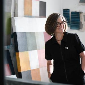 The grid is a way to filter the many ideas and inspirations in my head on to the canvas. The structure of the parameters of the grid became freeing as colour, texture, surface and balance (all the good things about painting!) came to the forefront. The painting is equally about an inspired idea as it is about the exploration of the medium used to create it.